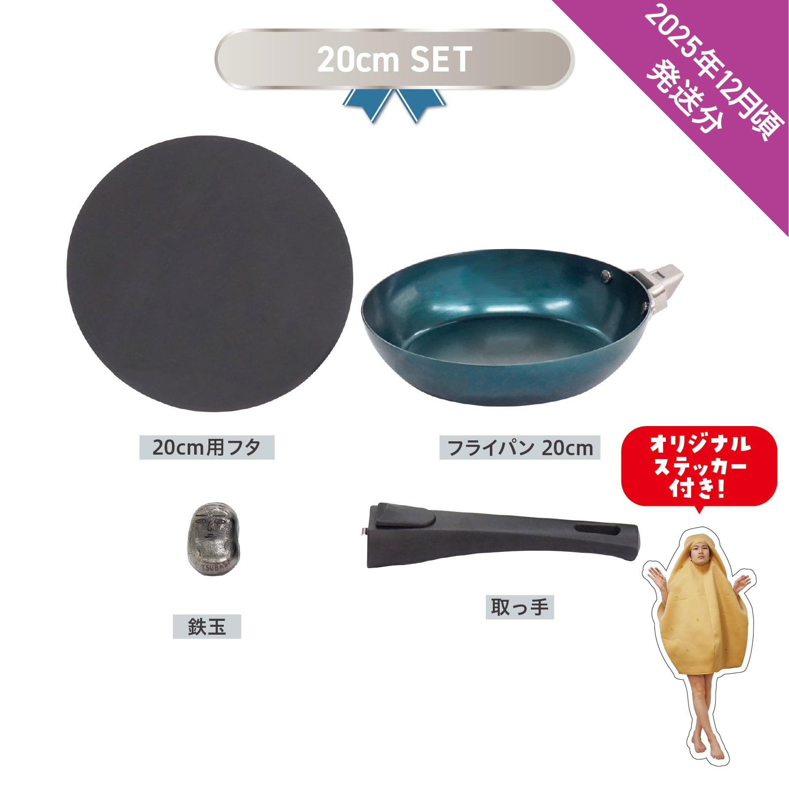 セット内容:鉄フライパン20㎝浅型、鉄蓋20㎝用、鉄玉、ハンドル