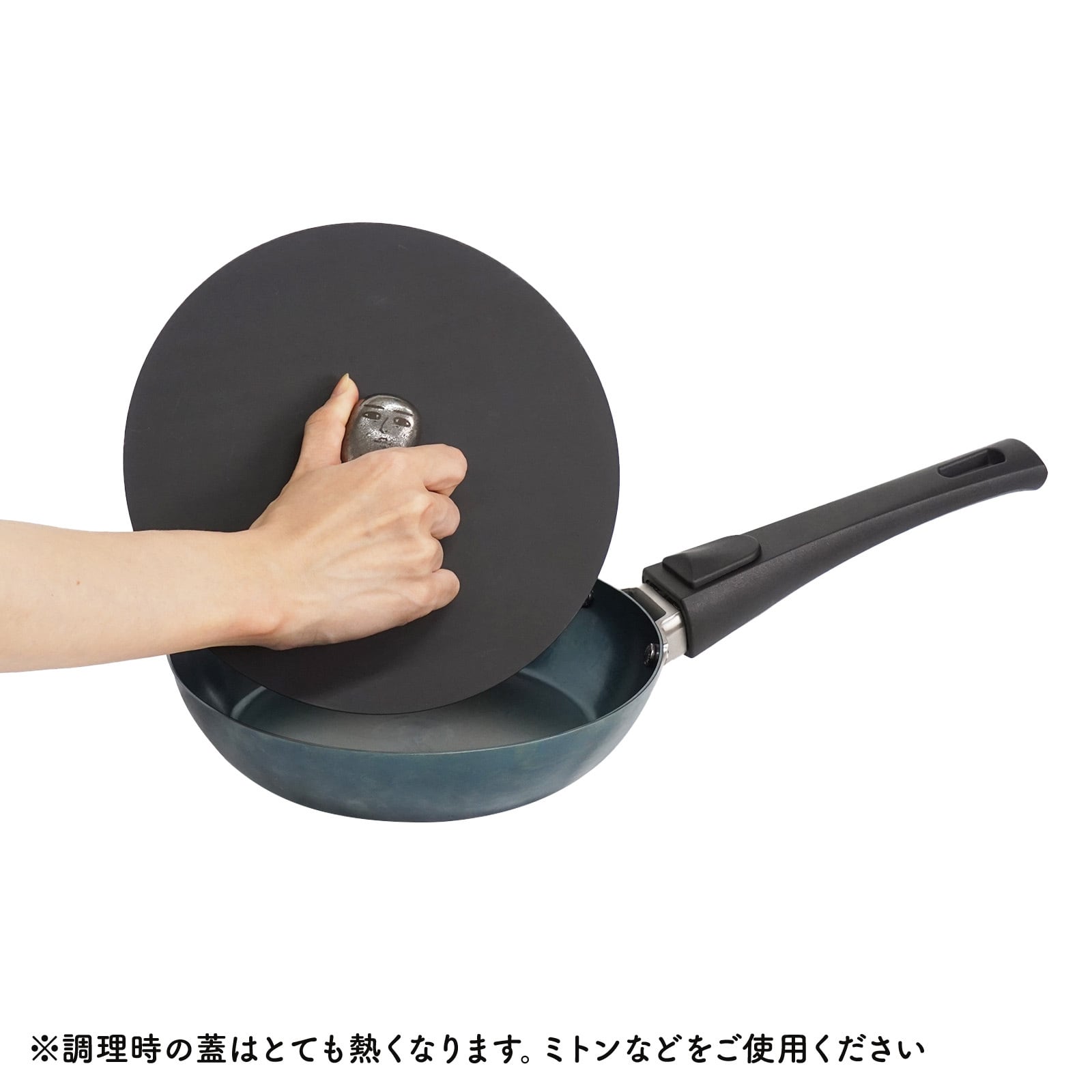 ※鉄玉を蓋のつまみとして使用する際には必ずミトンや厚手の布を使用し、火傷にはご注意ください。