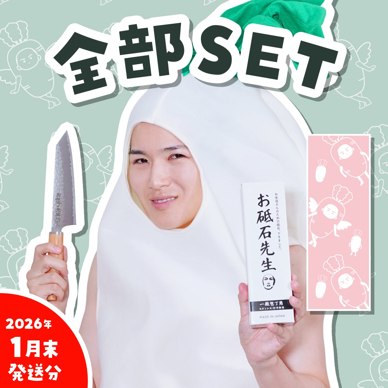 お包丁先生!×1、お砥石先生!×1、オリジナル手ぬぐい×1