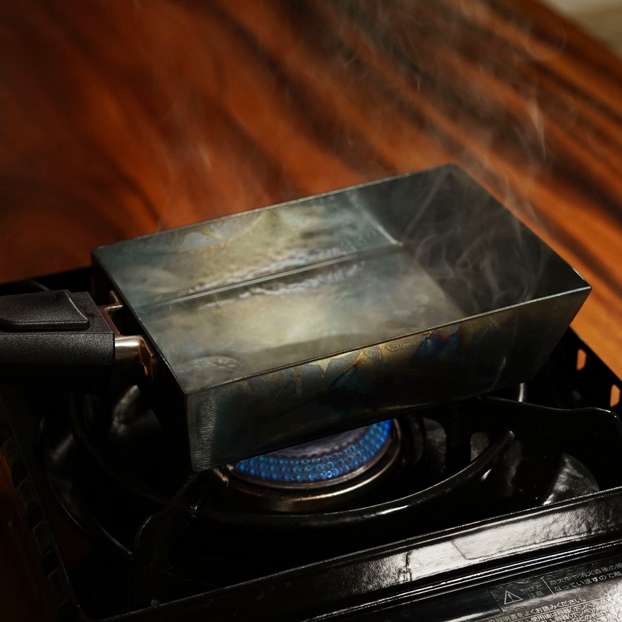 本体を一つ一つ約700℃ぐらいで焼き入れ、その後油に浸すことにより初めの状態から油が馴染んだものです。よって、「クリアー塗装」のようにサビ止め塗装もしていないので「油ならし」も必要ありません。手元に届いたらサッと洗って頂き、すぐに使って頂けます。